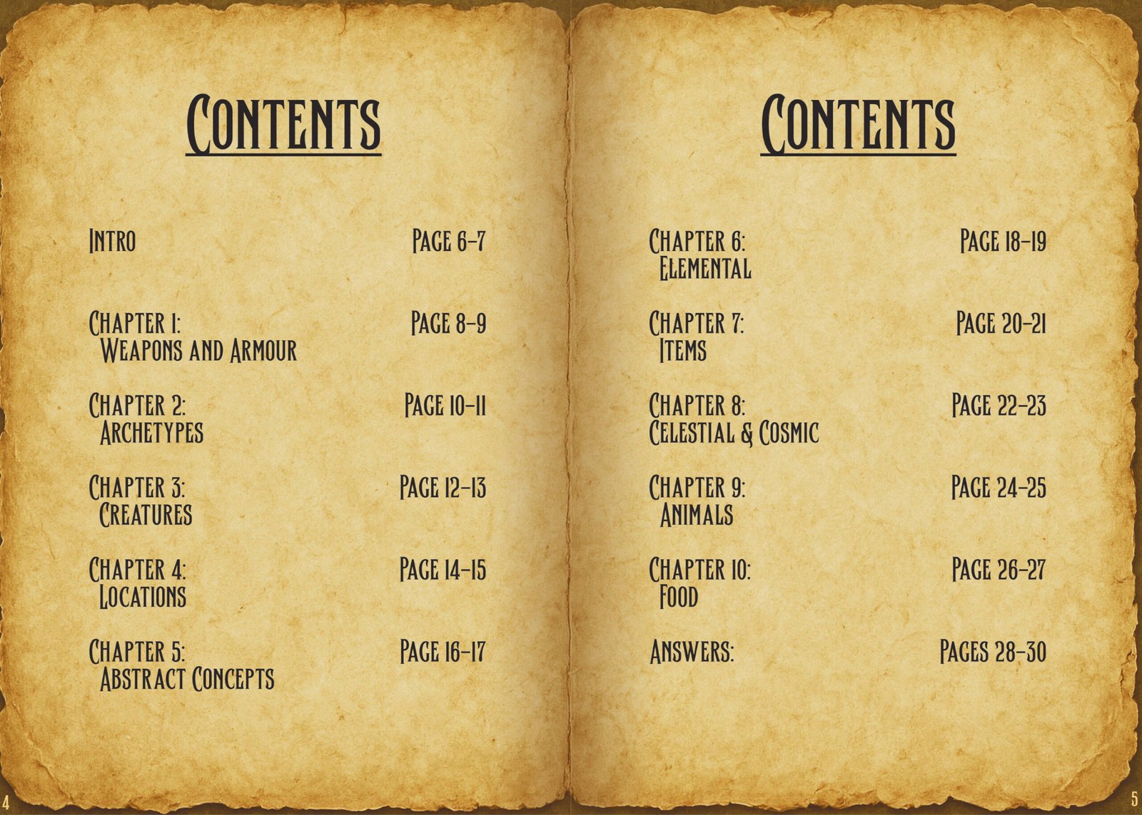 5/5 “This is great! The riddles look like they’ll be perfect for my dnd games! Difficult enough to require a little thought, but not difficult enough that my players will get frustrated over them. They are organized into sections so if you need the riddle to be related to an item, a job, or some natural force you’re able to easily find it!
